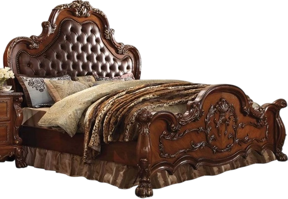 The Rococo style is candidly represented in the classic ornamental features of Dresden, with the carefully chosen hardwood veneer inlaid, plentiful decorative carvings, and ample sizes worthy of a Master Bedroom group.