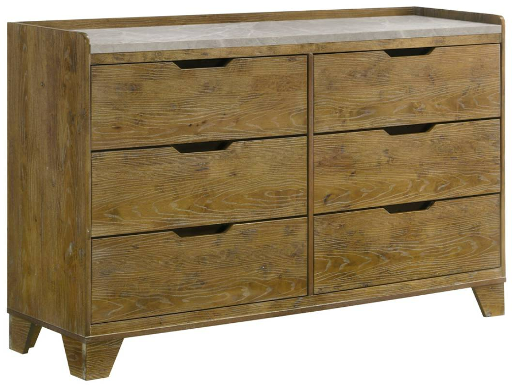 The Garcia dresser features a warm wood-tone finish, six smooth-glide drawers on sturdy rubberwood construction, and ample organized storage. Its design combines classic appeal with functional practicality for bedrooms needing stylish, roomy storage.Read More