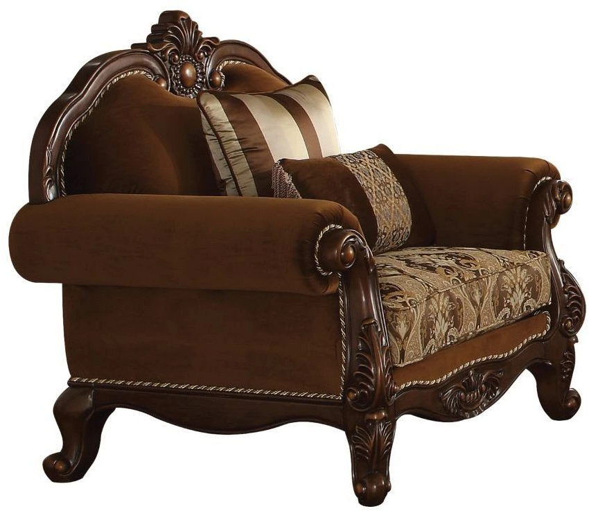 Classic elements of rolled carved and grooved camel back leading to the center top carving, the Jardena sofa is a piece of art as well as a comfortable addition to any living room. It features an arched tight back with loose cushions, and inviting pocket coil seat cushions.Read More