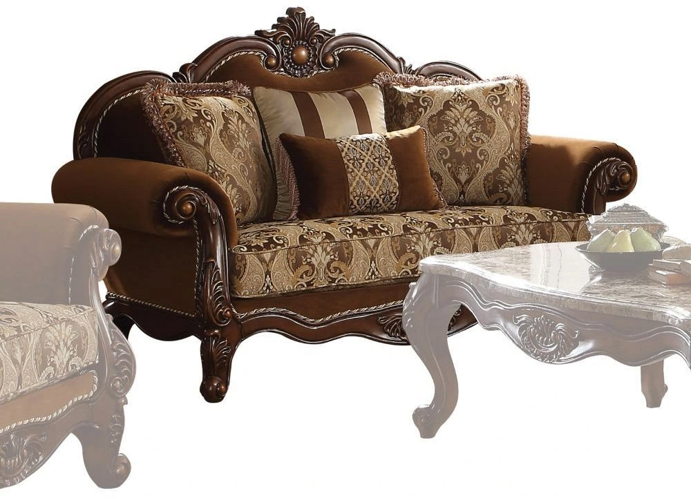 Classic elements of rolled carved and grooved camel back leading to the center top carving, the Jardena sofa is a piece of art as well as a comfortable addition to any living room. It features an arched tight back with loose cushions, and inviting pocket coil seat cushions.Read More