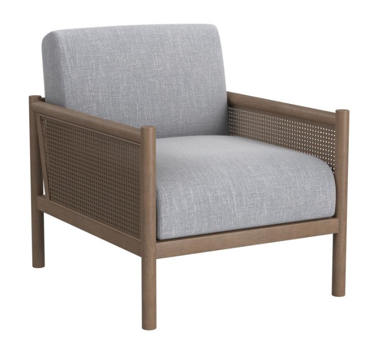 The seat and seat back cushion feature a combination of high-density foam and fiber fill and the fabric is a stain-resistant 100% polyester performance fabric in a calming baltic blue color.Read More