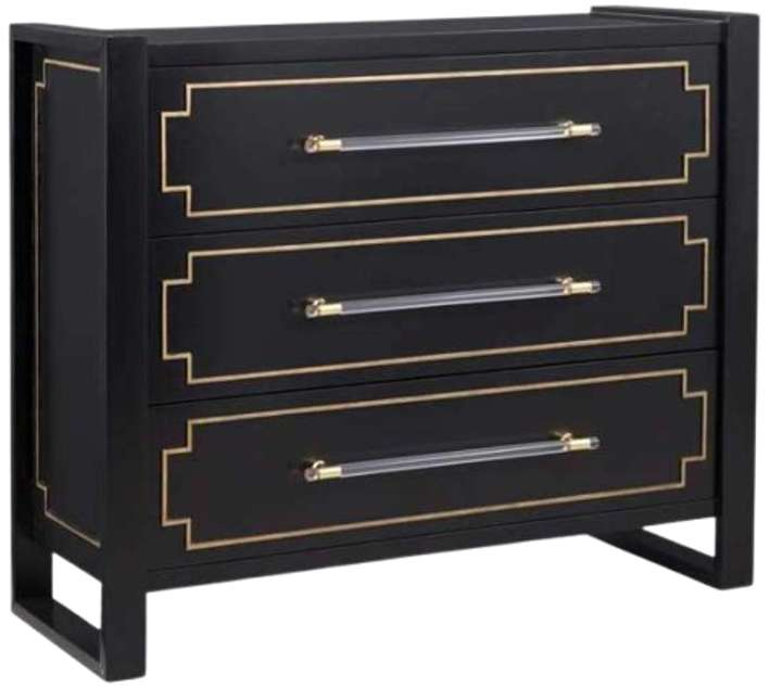 The Lowery hall chest exudes modern elegance, combining a sleek black lacquer finish with refined gold trim that outlines the drawers. The acrylic and gold bar hardware adds a touch of luxury, making this piece a striking addition to any room.Read More