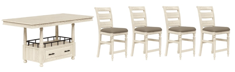 The Bellamy Lane Counter Set combines timeless style with modern functionality. Featuring a sleek counter table and matching seating, it offers a stylish and comfortable space for dining, entertaining, or casual gatherings.Read More