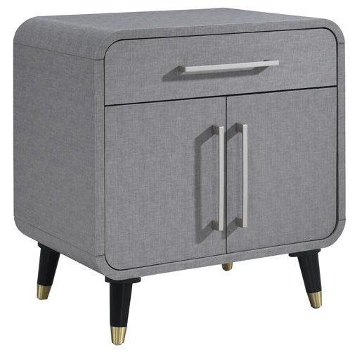The Celine Nightstand is a sleek and modern addition to any contemporary bedroom, featuring a sophisticated grey finish. Its design is characterized by clean lines and silver, minimalist handles that emphasize its modern aesthetic.Read More