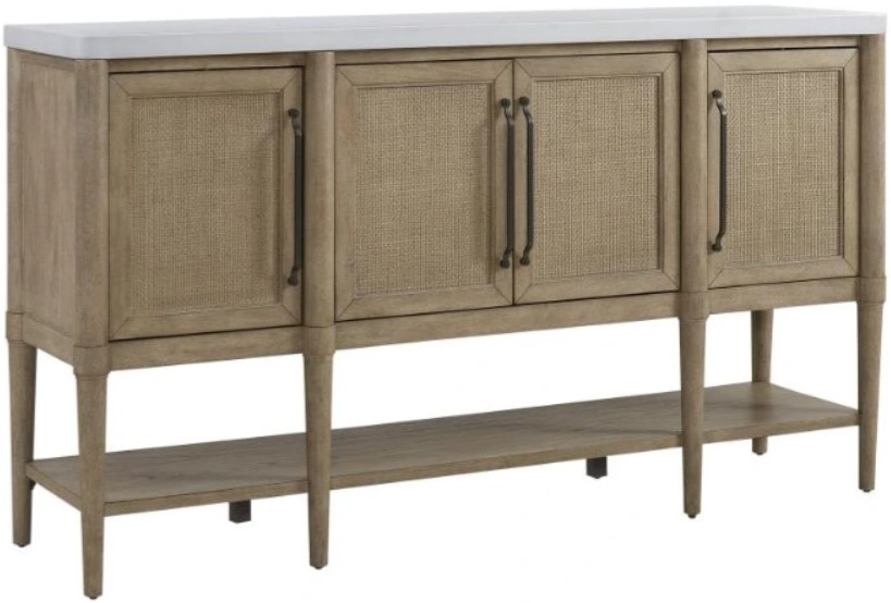 The Server features a durable cement top that not only adds a classic touch but also provides a robust and easy-to-maintain surface. The use of cane adds a touch of warmth and texture, creating a visually appealing contrast with the cool, industrial feel of the cement.Read More