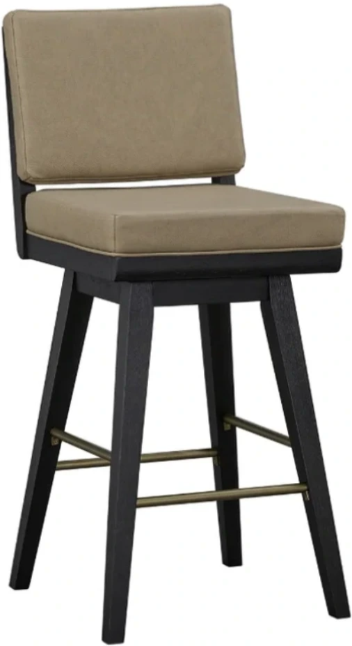 The rich peppercorn wood frame grounds the design with warmth, while a smooth swivel base and brass-toned footrest enhance both functionality and visual appeal. Perfect for kitchen islands or home bars, this stool brings refined texture and tailored sophistication to any space.