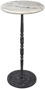 Petite in scale but full of character, this martini table features a polished round marble top in soft taupe and gray tones, paired with a sculpted black iron base. The turned stem showcases faceted detailing, while the circular foot is textured with a hammered ring pattern for added visual interest.Read More