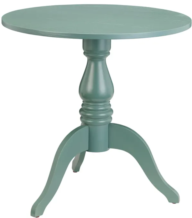 Add a touch of timeless charm to your space with this classic blue accent table. Featuring a round tabletop and a beautifully turned pedestal base, its sculptural silhouette blends traditional design with modern simplicity. The curved tripod legs enhance stability while adding graceful detail, all finished in a soft matte blue that brings depth and sophistication.Read More