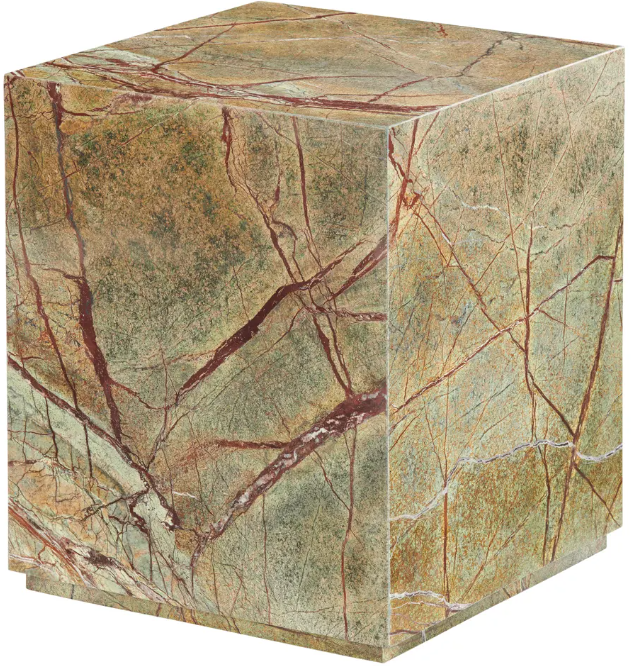 A bold blend of material and tone, this marble accent table features a clean-lined cube shape crafted from richly veined stone. Shades of green and brown course through the surface, creating a natural, high-contrast pattern that makes every piece one of a kind.Read More