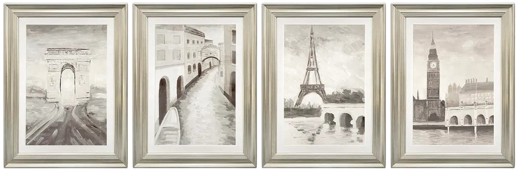 Capture the romance of the world's most iconic cities with the Crestview Collection Euro Destinations set. This four-piece gallery collection features painterly, monochromatic renderings of historic European landmarks. Encased in elegant silver-finished frames, these sophisticated pieces bring a timeless, globetrotting charm to your transitional home.Read More
