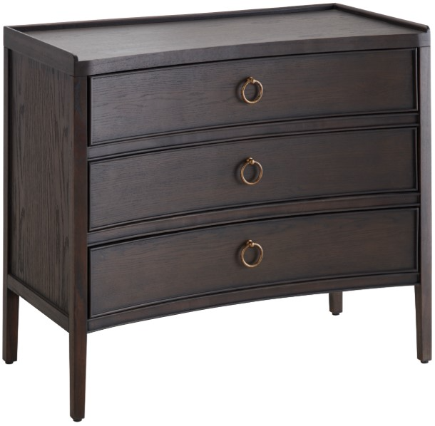 Bringing gentle curves and rich tonal depth to compact storage, this three-drawer accent chest pairs refined design with everyday function. Made from wood with oak veneer, the warm brown finish highlights subtle grain, while softly arched drawer fronts create a tailored profile.Read More