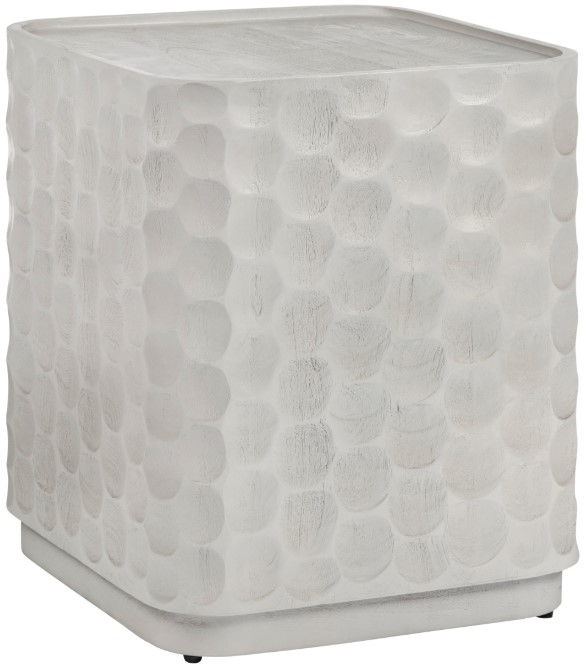Enhance your space with this beautifully crafted accent table, featuring a white wood grain finish with a stained touch. Made from solid mango wood, its square shape is enhanced by a unique dimpled texture on all sides, adding depth and character. The tabletop is slightly recessed with a raised edge.Read More