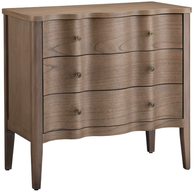 Shaped with a softly contoured front, this accent chest brings sculptural movement to a classic storage piece. Made from wood with oak veneer, it features a light brown natural wood grain look with a stained finish for warm depth. Antique brass knob hardware adds a timeless touch.Read More