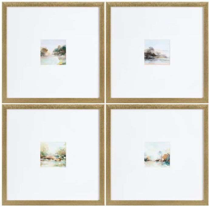 Include this wall art in your living room design, featuring a lake and beach scene art and a gold frame. This wall art will surely make a statement in your living room design.Read More