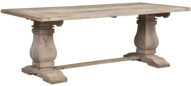 Inspired by the architectural balustrades from European balconies, Acquisition pieces are exemplified by the trestle table base silhouette. Offered in a Charcoal and Natural finish, the classic dining pieces are heavily distressed to emulate reclaimed wooden timbers.Read More