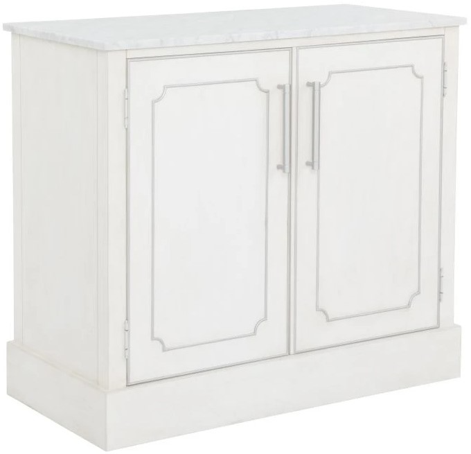 Taking a modern approach to traditional design elements, our Camille dining collection includes a dining table, credenza and bar cabinet. Crafted from rubberwood solids and finished in linen with a contrast highlight stripe in antique pewter.Read More