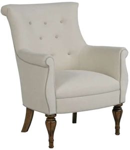 Accent your living area with this Cecilia Lounge Chair. This elegant traditional chair has a curved back with rolled top edge. The rolled arms have bombe' shaping. The wood legs have carved detailing.Read More