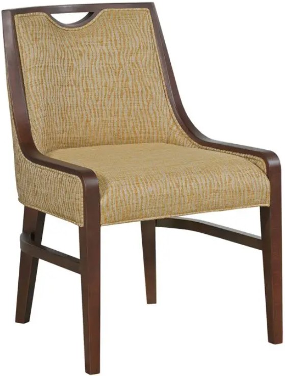This transitional armless chair has exposed wood framing the back and flowing down the sides. A notched opening at the top back edge provides a convenient holding spot. Adds a touch of glamour with this chair.Read More