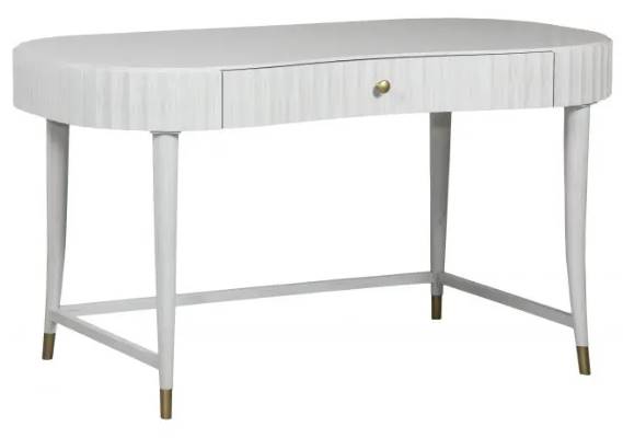Finished in pearl with antique brass ferrules, one drawer, and a fluted apron