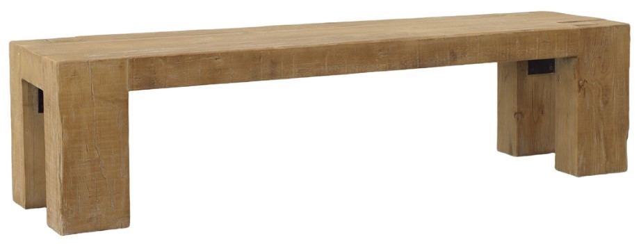Reclaimed pine, with all its inherent signs of prior use, is utilized to construct this sturdy and simple bench. Whether used table side, or in a mud room "drop zone", this bench will hold up to happy family use for years to come.Read More