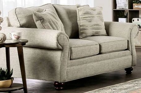 With its conservative looks and transitional flair, this loveseat is for those who decided to go for a neutral palette in their home. The soft linen-like fabric in cream recedes to the background.Read More