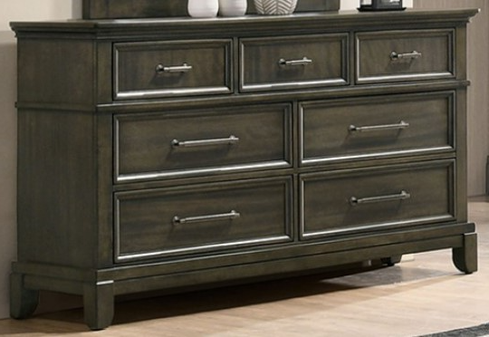 A perfect anchor piece for your master suite, this dresser commands attention with its bold details and intricate crown molding. The rustic-inspired appliance bar pulls are finished in a shade of pewter.Read More