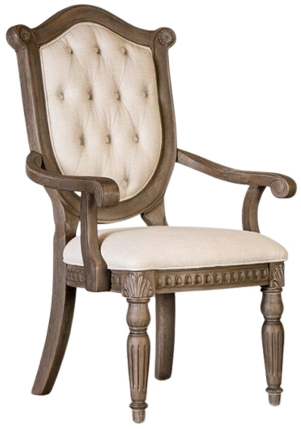 The Furniture of America® Seven Oaks 2-Piece Beige/Weathered Oak Arm Chair Set features a durable weathered oak frame with plush beige cushions for added comfort. The armrests offer extra support, making these chairs a perfect addition to any space, blending style with long-lasting durability for both indoor and outdoor use.Read More