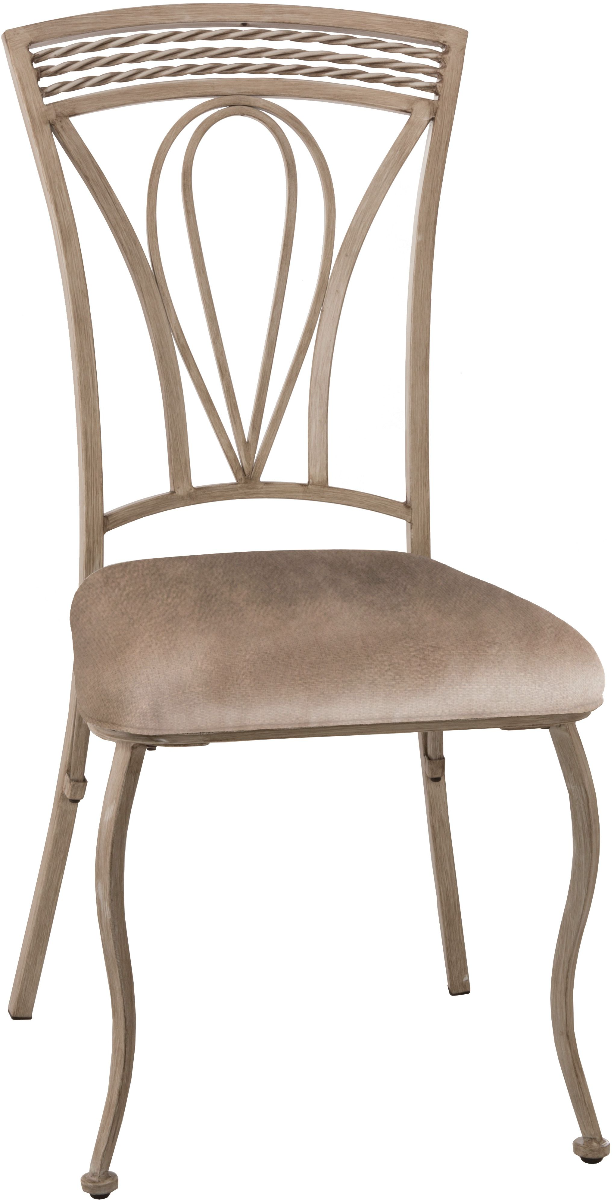 Fair-hued, airy and lovely, the Napier Chair can brighten any room of the home. Constructed of metal with an aged ivory finish, the Napier features a back design of metallic twists and pedal-reminiscent shapes.