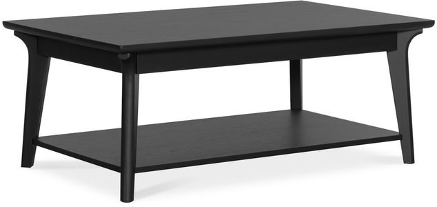This cocktail table will be right at home in your living space. An open shelf is perfect for stowing books or magazines, or housing a decorative conversation piece. The possibilities are endless, and the smooth black finish will blend with any décor.Read More