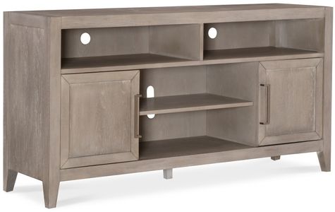 With straight lines and tapered feet in a light finish, this entertainment console is as stylish as it is functional. There is plenty of creative storage. The open shelf is perfect for housing a gaming console, sound bar, or decorative home accent piece.Read More