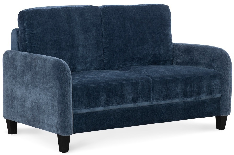 This glamourous loveseat brings sophisticated comfort to your living room. A deep blue color pops with any décor style, and the rich faux velvet is crafted of performance fabric, so spills are a breeze to clean up. 15-minute assembly means your space is ready for this dazzling addition in no time.Read More