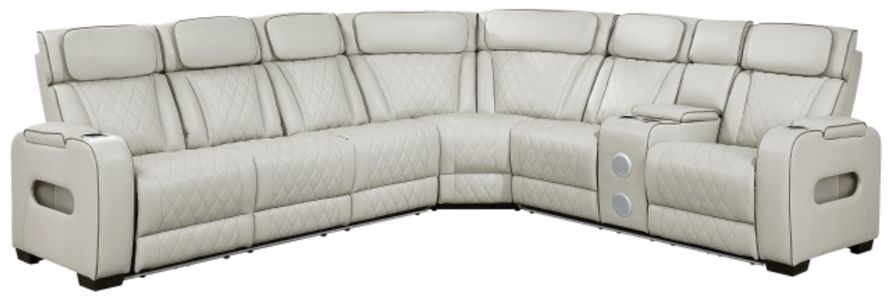 Create the ultimate home theater experience with this high-tech, 3-piece power reclining sectional. Upholstered in a sleek and durable breathable faux leather, this sectional combines luxurious comfort with state-of-the-art features. Enjoy personalized relaxation with one-touch power controls for both reclining and power-adjustable headrests.Read More