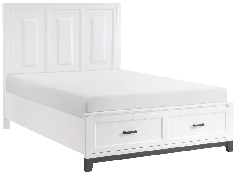 The Garretson Collection blends transitional lines with rustic styling to create an elegant addition for your bedroom. The distinct grain features a 2-tone finish. The queen bed features metal bar hardware on the picture frame drawer fronts of the low-profile storage footboard, the two drawers creating additional space within your room.Read More