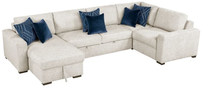 Transform your living space with the adaptable and comfortable 4-piece sectional featuring a convenient pull-out bed and a chaise with hidden storage. Upholstered in a soft yet durable textured microfiber, this modular design includes a comfortable 1-seater, a space-saving corner seat, a versatile 2-seater with a hidden pull-out bed, and a chaise offering discreet storage.Read More