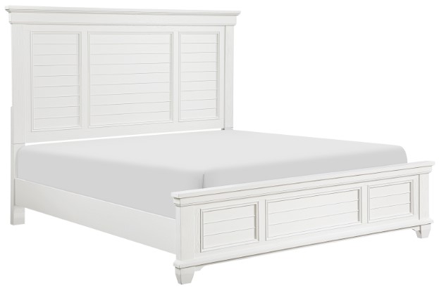 The shutter paneling on the queen bed solidifies the transitional style, lending charming accent to your space.