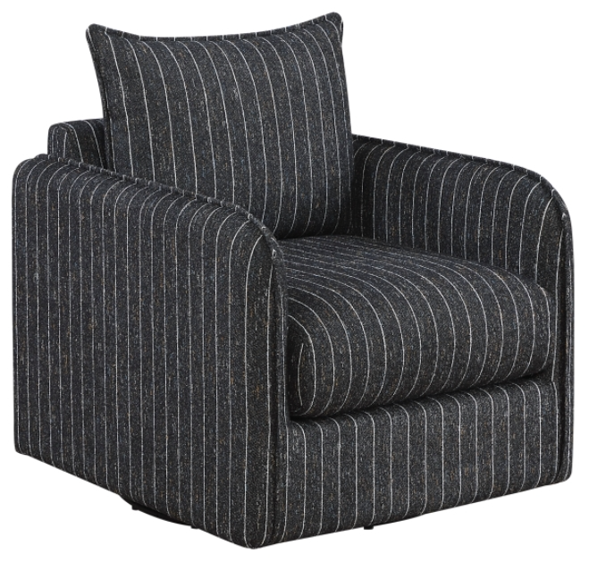 Enhance your living space with our versatile swivel chair. This series offers the ultimate in relaxed comfort and flexibility, featuring plush textured fabric upholstery. The chair design includes reversible back and loose seat cushions for easy maintenance and longevity, all supported by a smooth 360-degree swivel mechanism that allows for effortless movement and versatility in any room layout.Read More