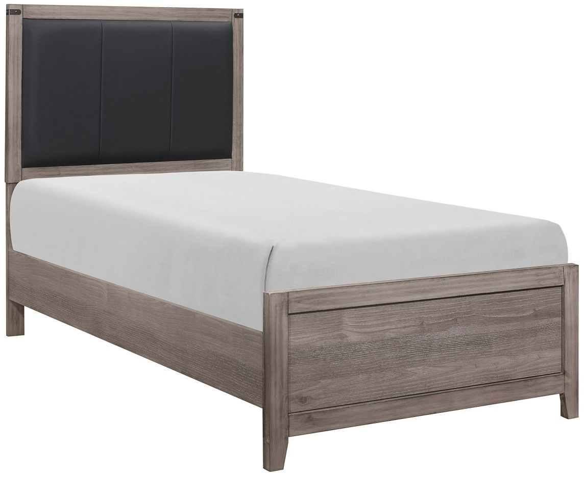Industrial design is subtly used to achieve a cool look for your bedroom in the Woodrow Collection. Dark metal corner banding with rivet accent lends to the casual look of this bed. Melamine laminate features a weathered-wood look that furthers the intended design.Read More