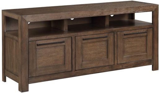 This 66" console offers a spacious surface for televisions and décor, paired with ample storage for media components. Finished in an Old Forest Glen tone, it features open shelving and enclosed compartments to keep entertainment areas organized and functional.Read More