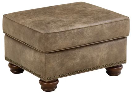 Experience the charm of rustic elegance with the Prairie Ottoman. This piece showcases a classic rolled arm design, adorned with nailhead trim and a turned foot, all upholstered in a weathered leather-look fabric.Read More
