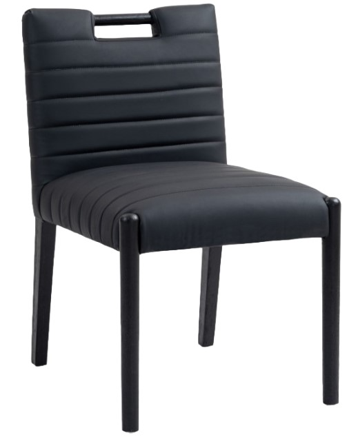 Indulge in the allure of the black vegan leather Aimee Dining Side Chair by Meridian Furniture. Its captivating design and luxurious black vegan leather finish elevate any space with effortless elegance.Read More