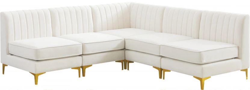 Bring modern beauty to your space with the addition of this Alina Velvet Modular sectional. This beautiful sectional features deep channel tufting to ramp up its visual interest and add to its resilient demeanor. Its soft cream velvet upholstery blends nicely with existing elements in your room and is sleek to the touch.Read More