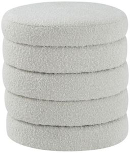 Liven up your living space with this Aphia cream boucle fabric ottoman/stool from Meridian Furniture. Featuring rich cream boucle fabric upholstery, this ottoman offers softness to the touch and style to the eye. Deep channel tufting gives the appearance of multiple layers stacked together.Read More