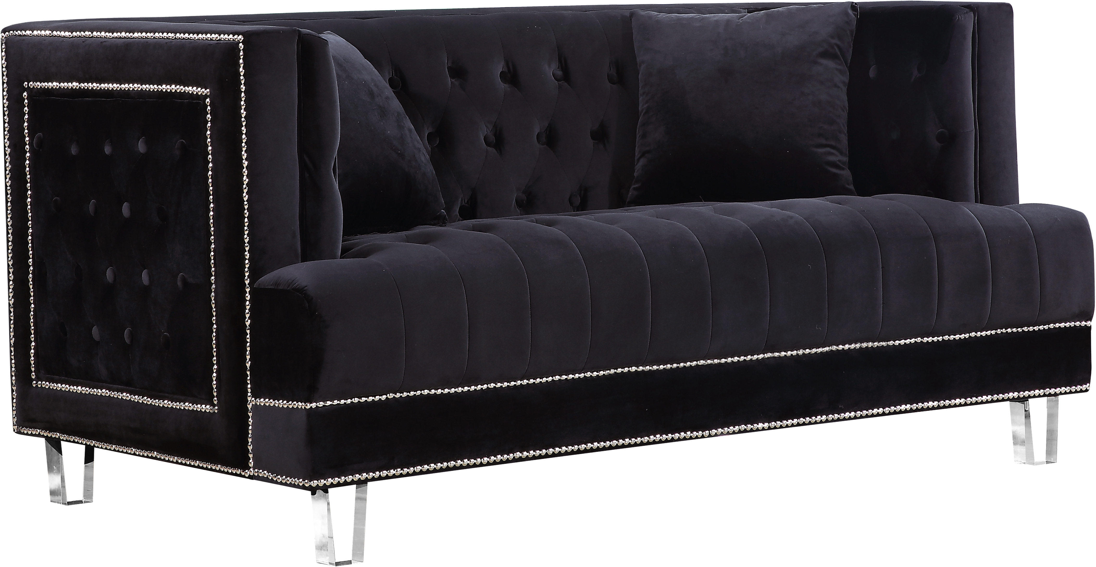 The Lucas Collection by Meridian Furniture. Features beautifully tufted velvet upholstery with a custom nail head design and clear acrylic legs. This collection is guaranteed to be the highlight of any home.Read More