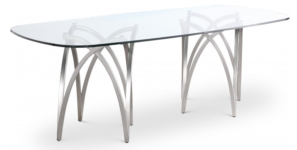 The Madelyn dining table from Meridian Furniture is guaranteed to attract the eye of anybody who walks into the space with its stunning silver finish. The transparent glass top lets the elegance of the silver metal frame show through, while the sturdy legs hold the tabletop perfectly.Read More