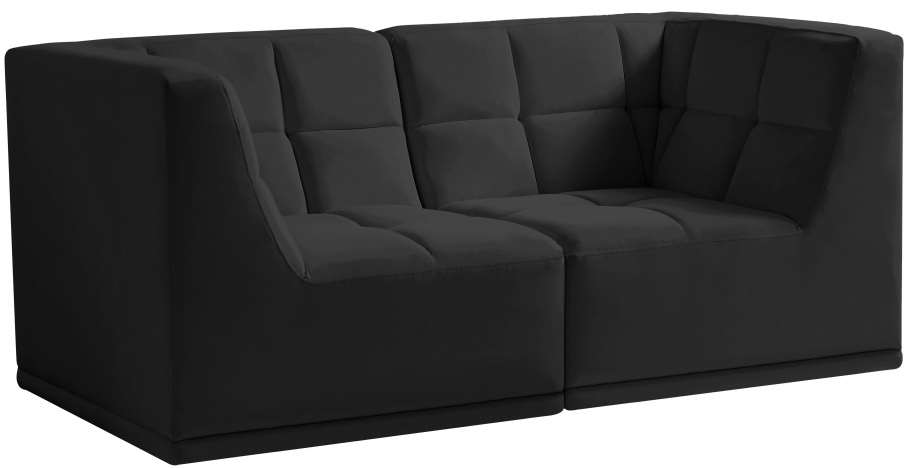 Bolster a contemporary vibe in your living room with this Relax black modular sofa. Soft black velvet upholstery offers delicate comfort, making this sofa cozy for anyone who sits in it. Biscuit tufting gives this sofa texture and a modern style, adding extra comfort and elegance to your living space.Read More