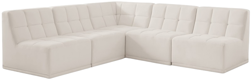 Bolster a contemporary vibe in your living room with this Relax cream modular sectional. Soft cream velvet upholstery offers delicate comfort, making this sectional cozy for anyone who sits in it. Biscuit tufting gives this sectional texture and a modern style, adding extra comfort and elegance to your living space.Read More