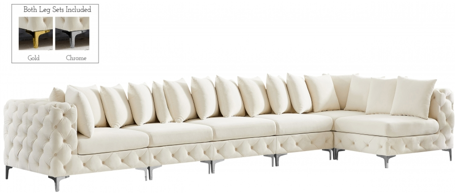 Lean back and relax on this Tremblay sectional. Featuring soft cream velvet upholstery with deep button tufting, this sectional adds a bold touch to any living space. A complete set of gold and chrome legs are included, so you can change it up to suit your home décor.Read More