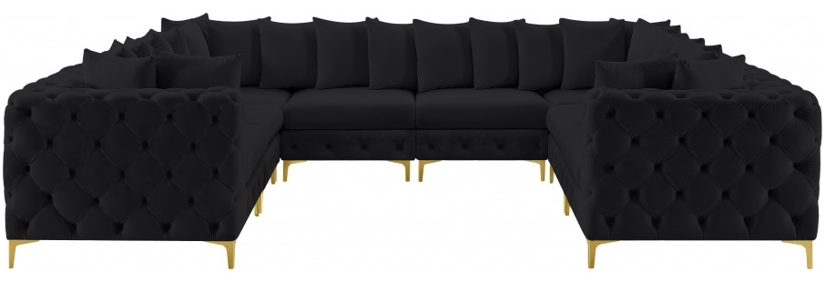Lean back and relax on this Tremblay sectional. Featuring soft black velvet upholstery with deep button tufting, this sectional adds a bold touch to any living space. A complete set of gold and chrome legs are included, so you can change it up to suit your home décor.Read More