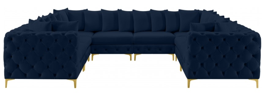 Lean back and relax on this Tremblay sectional. Featuring soft navy velvet upholstery with deep button tufting, this sectional adds a bold touch to any living space. A complete set of gold and chrome legs are included, so you can change it up to suit your home décor.Read More