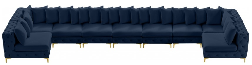 Lean back and relax on this Tremblay sectional. Featuring soft navy velvet upholstery with deep button tufting, this sectional adds a bold touch to any living space. A complete set of gold and chrome legs are included, so you can change it up to suit your home décor.Read More
